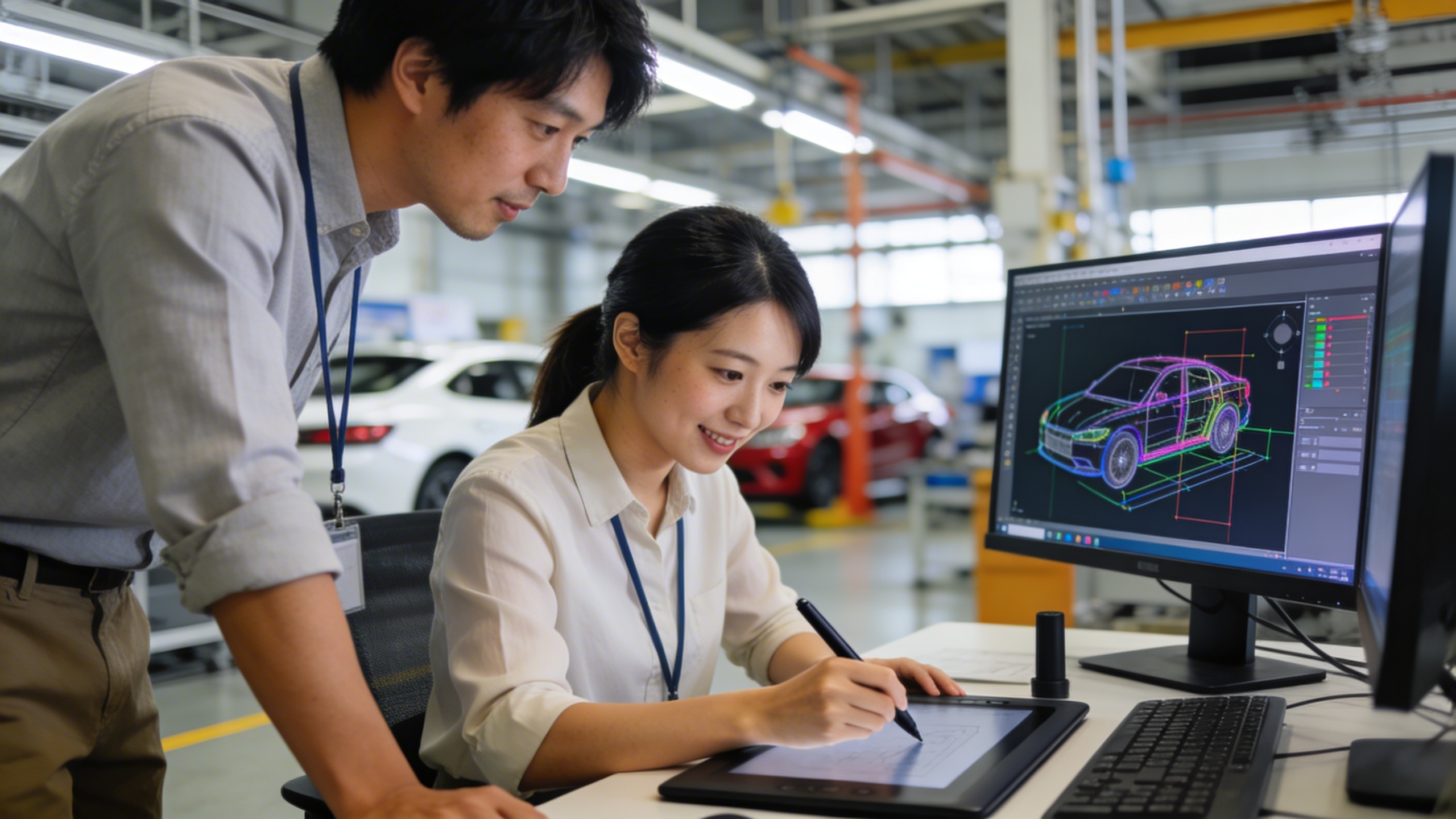 例えば自動車の内装・外装設計、安全性能の確認、生産ラインの立ち上げなど。大手メーカーの自動車を手掛けたり、製造現場の主役とも呼べる設備を設計したりすることも。様々な製品に関わることができるので、手に職をつけたい方やスキルアップを目指したい方にピッタリです!