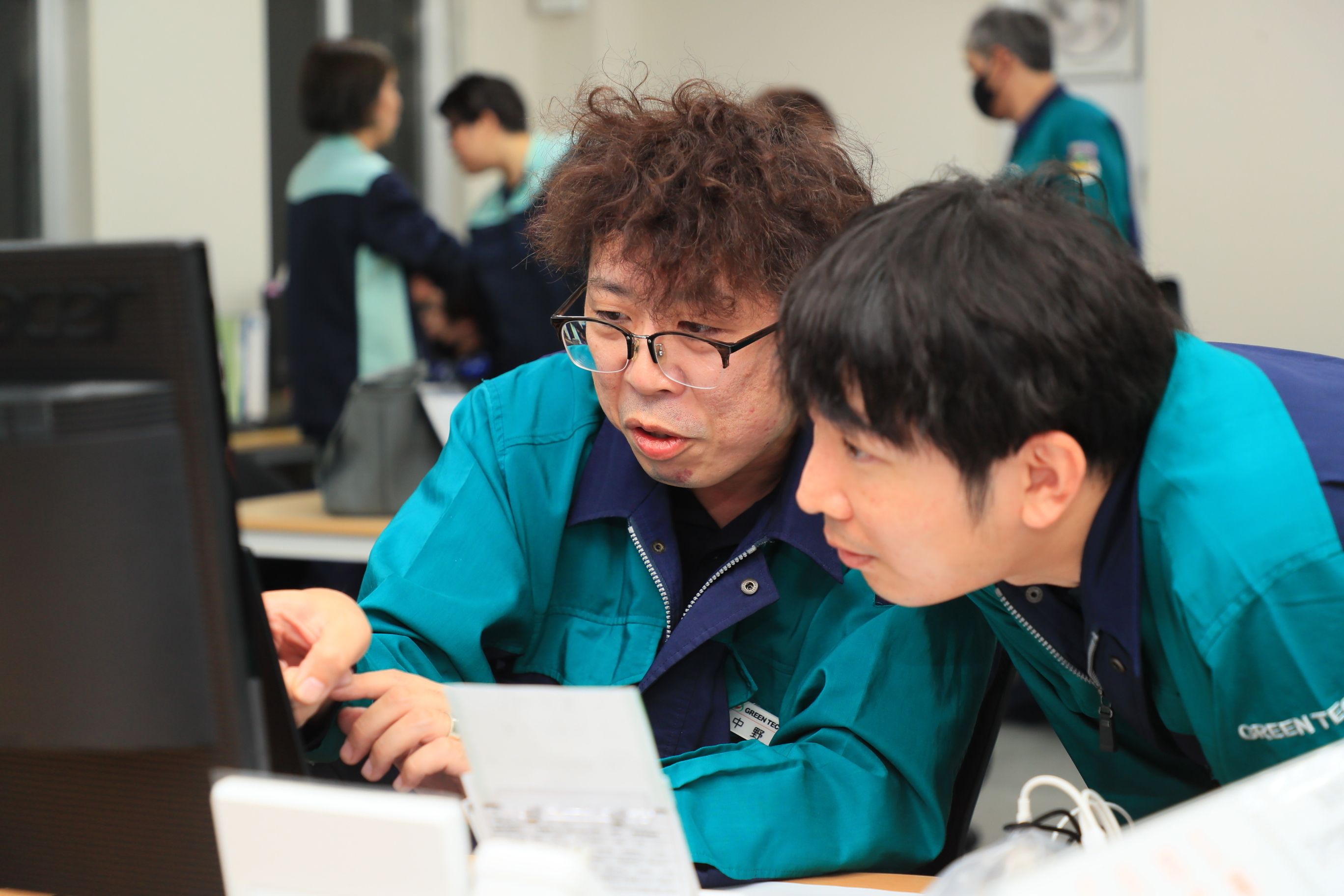 自社の研修施設にて、Excelの操作方法や図面の読み方、